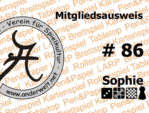 Der Anderwelt e.V. hat im März erneut Zuwachs bekommen und zählt damit aktuell 42 Vereinsmitglieder - so viel wie noch nie! Wir begrüßen die frisch gebackene Anderweltlerin Sophie Z., ein Fan des Brettspiels und der Nähkünste. Als regelmäßiger Gast beim Stammtisch und Spiele-Sonntag konnte sie durch ein anderes Mitglied angeworben werden.