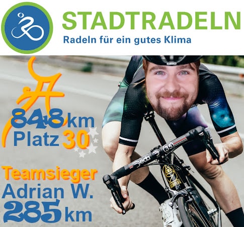 6 Mitglieder und ein Gast haben 20 Tage lang im Team Anderwelt e.V. für das Hanuer Stadtradeln mitgestrampelt. Mit 848 km - leider nur halb so viel als im letzten Jahr - konnten wir in Hanau diesmal Platz 30 von 54 erreichen. Klarer Teamsieger ist unser Mitglied Adrian W. durch 285 geradelte Kilometer. Mit mehr Teilnehmern könnten wir im nächsten Jahr bestimmt wieder besser abschneiden.